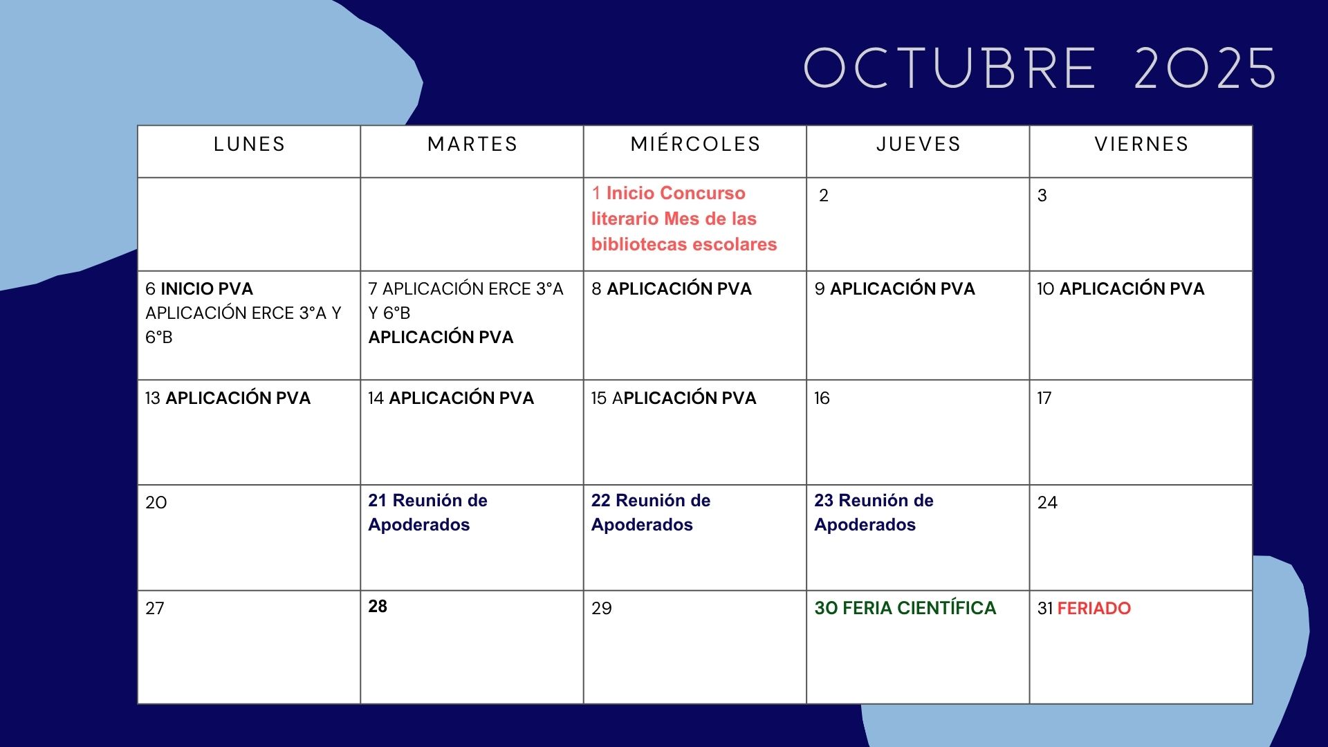 CALENDARIO OCTUBRE 2025