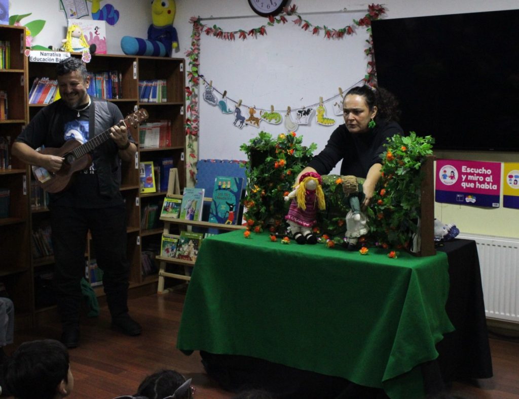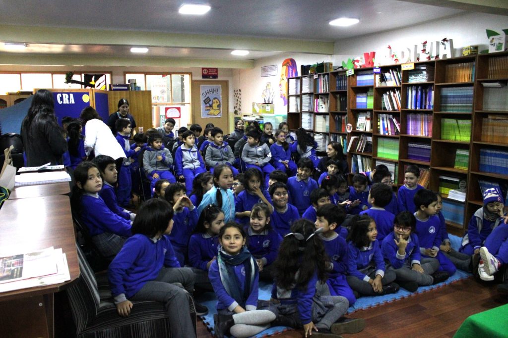 El miércoles primero de abril, damos inicio formalmente a la celebración del mes del libro en nuestro colegio, y como actividad previa, este lunes recibimos la visita de a la reconocida escritora valdiviana Mónica Munizaga, quien presentó junto al cantautor Javier Milanca, “Había una vez un Cuento”, relato que recupera personajes de cuentos clásicos de los hermanos Grimm como, Caperucita roja, Hanssel y Gretel, Los tres Cerditos y Risitos de Oro.